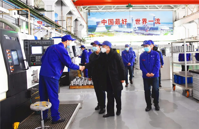 2月16日,哈电集团党委书记、董事长斯泽夫先后前往动装公司、阀门公司,慰问春节期间仍坚守科研、生产一线的干部员工,查看相关项目的生产进度,并为大家送上新春佳节的祝福。