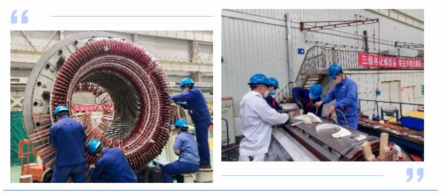 线圈制造部下线工段1005-313重点项目面临着工期紧、任务重的境况,负责该项目的攻坚小组6名成员不约而同地报名驻厂工作,连续多日加班加点进行该项目电动机定子和转子下线工作,并在内部开展质量自检工作,保证了生产工期和产品质量。