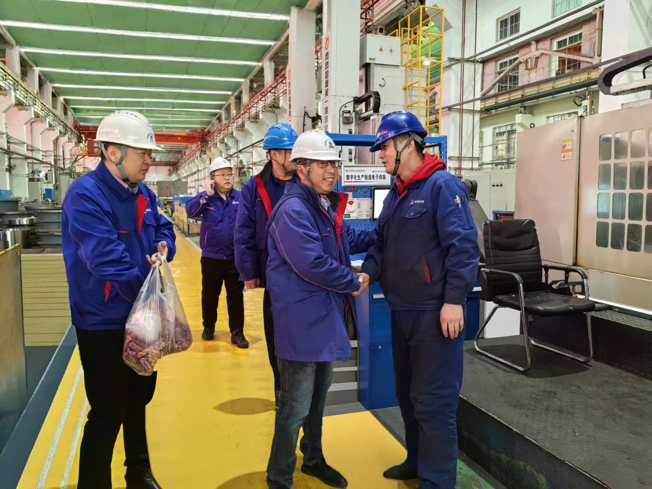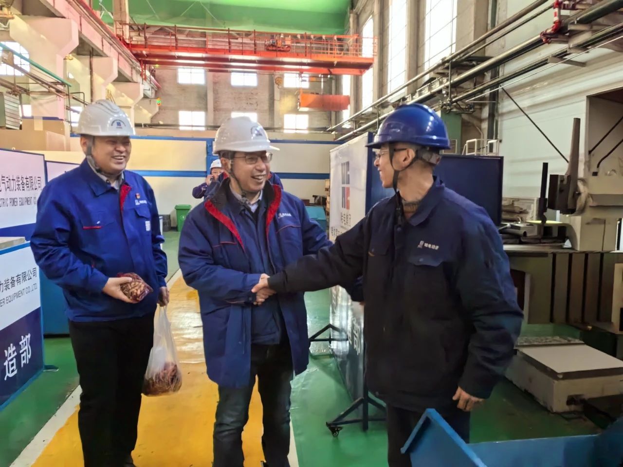 "大家辛苦了!感谢你们为公司发展作出的贡献!"在车间,李梦启与在岗职工亲切握手交流,详细了解各重点项目推进进度及春节期间生产安排,将节日慰问品送到职工手中。"你们放弃与家人团聚的机会,用责任与担当保障重点任务节点,大家辛苦了。"每到一处,李梦启都向职工们致以诚挚问候,一句句"新年好" "注意安全"的暖心话语,让现场洋溢着温馨祥和的节日氛围。慰问过程中,李梦启重点检查了生产现场的安全管理、设备运行及应急预案落实情况。他强调,越是节日期间越要绷紧安全之弦,要求各生产单元严格落实安全生产责任制,加强重点区域巡检,确保职工平安过节、生产有序推进。在听取各制造部负责人关于产品攻关进展的汇报后,他勉励团队要"以开局即冲刺的姿态抢抓生产黄金期,高标准兑现对客户的交付承诺"。