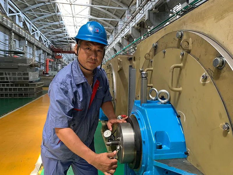 该同志在2021年参与部门新产品电机装配时,由于电机的设计转速、容量等参数与以往电机有很大的不同,他在装配前通过熟悉工艺文件、与工艺设计人员技术交底,明确关键工序及重点部位,做好各项准备工作,既提高生产效率同时又提升试验成功保险系数。2021年6月,80MW风洞电机在某现场运行时出现轴向串动大的问题,他受公司指派前往正值新冠疫情形势严峻的沈阳,到达现场后经仔细分析,凭借丰富的实践经验,将工艺顶轴装置拆卸后更换位置重新装配,仅用一天时间就解决了用户燃眉之急,获得用户的充分肯定。