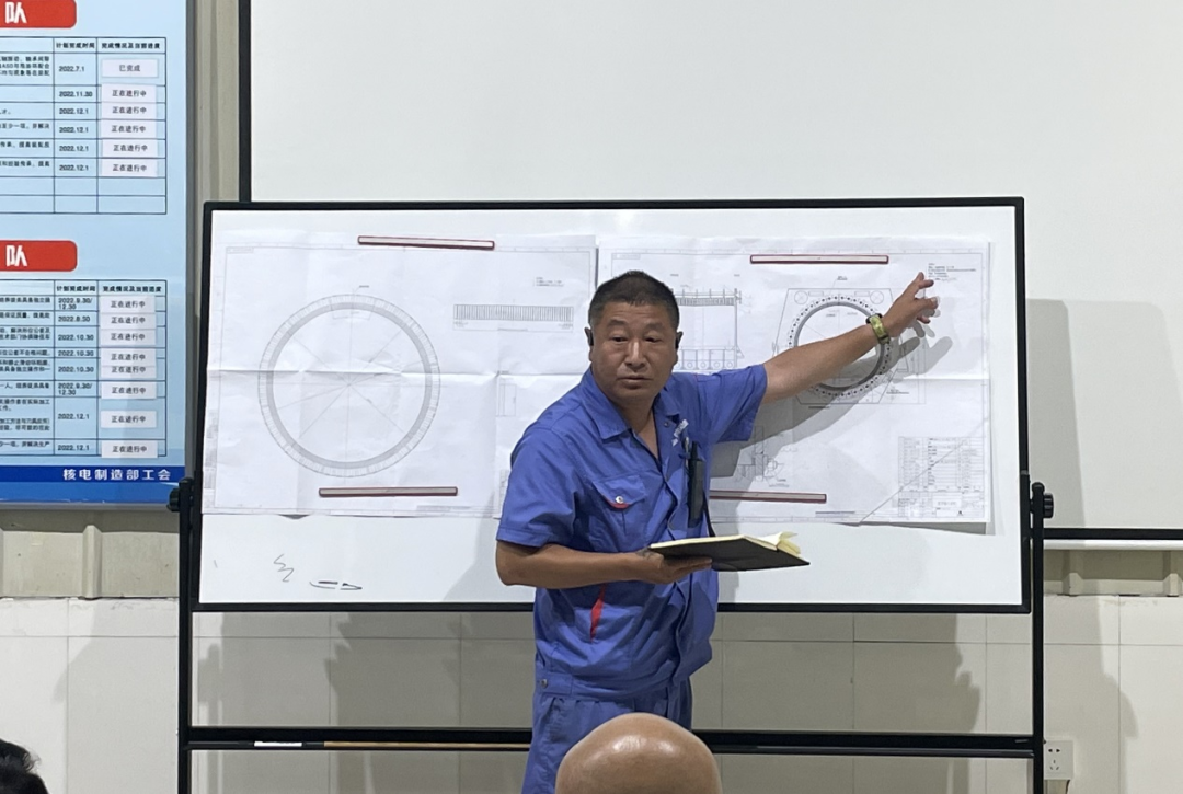 AP1000主泵电机是第三代核电技术,AP1000定子铁心装压的装配方式与国内外任何电机都不同,它采用的定子装压胎具膨胀心轴是从国外进口的,这是一个新型的设计理念,一切需要从零开始。他与工艺人员集思广益,深入研究,针对AP1000定子铁心装压制定了专项工艺守则,将此项技术固化下来,为后续定子铁心装压提供了技术指导。此项“大型屏蔽电机定子铁心装压工艺”获得了国家专利。2017年3月,动装公司CAP1000项目首台夹套热套圆满完成。夹套热套工作属于关键工序且难度较大,工艺要求极高,因内夹套表面布满水道,所以在夹套热套过程中,保持内夹套与外夹套水平居中至关重要。一旦出现偏差,极有可能在外夹套低端面与某一高度水道边缘处造成磕伤。此外,由于夹套表面较薄,散热较快,很容易冷却收缩后抱死,依据文件要求工件出炉到完成热套必须控制在8分钟以内。正式操作前,他给团队成员做好技术交底,测量内、外夹套圆度,调整十字吊梁水平,操作中稳中有快,一气呵成。